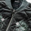 ベロア生地にキルティングステッチを施したMA-1スタイルのスーベニアジャケット。